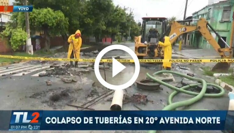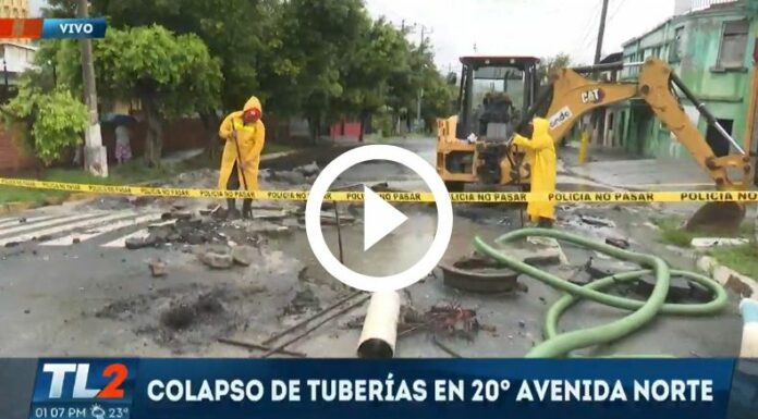 En estas horas de la tarde, el periodista Andrés Sandoval, nos informa sobre el colapso de unas tuberías en la 20 Avenida Norte de San Salvador, Por lo que no reitera que el paso vehicular por la zona se encuentra restringido debido al incidente.
