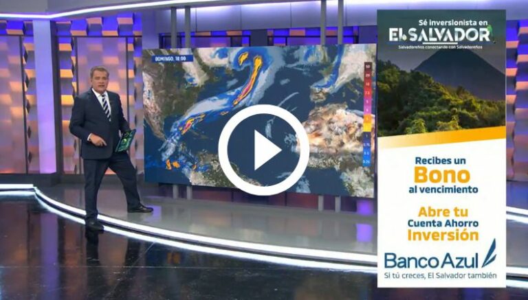 Asimismo, en un mapa donde se muestra la influencia sobre los vientos que puedan acercarse al territorio salvadoreño, con el pronóstico de siete días, se observa como, para el día sábado, se abre un espacio que puede llegar a provocar corrientes de aire frío. Esto se encuentra desde la parte superior del golfo de México. Para el día domingo, muy probablemente, tal y como lo mencionó el ingeniero, puede existir probabilidades de lluvia, no en todo el país, pero sí en algunas zonas.