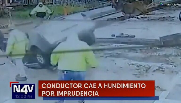 ¡Impactante! En video quedó registrado el momento preciso en el que un conductor cayó dentro de una profunda cárcava, todo por no respetar la señalización y las indicaciones de unos trabajadores que se encontraban reparando el hundimiento.