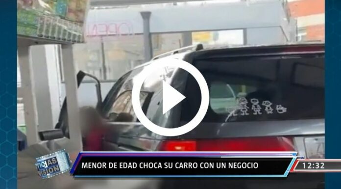 De un momento a otro, parece irse hacia atrás y no puede detenerse, hasta impactar contra la vitrina de un local, y quebrarla por completo. Una buena parte del automóvil queda dentro de este mismo establecimiento, sorprendiendo a los que se encontraban ahí.