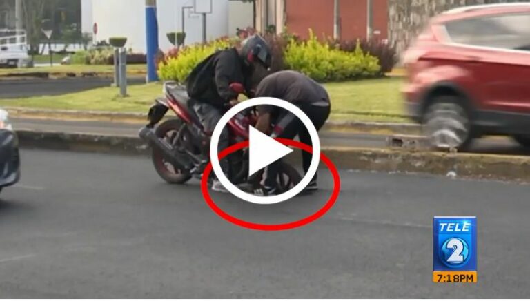 Tal y como se puede observar en el video, el motociclista buscó salir por sus propios medios, pero no pudo, por lo que recurrió a solicitar ayuda. El copiloto de un camión de carga de productos se bajó para intentar sacarlo de la alcantarilla. Después de unos minutos, pudo liberarlo.