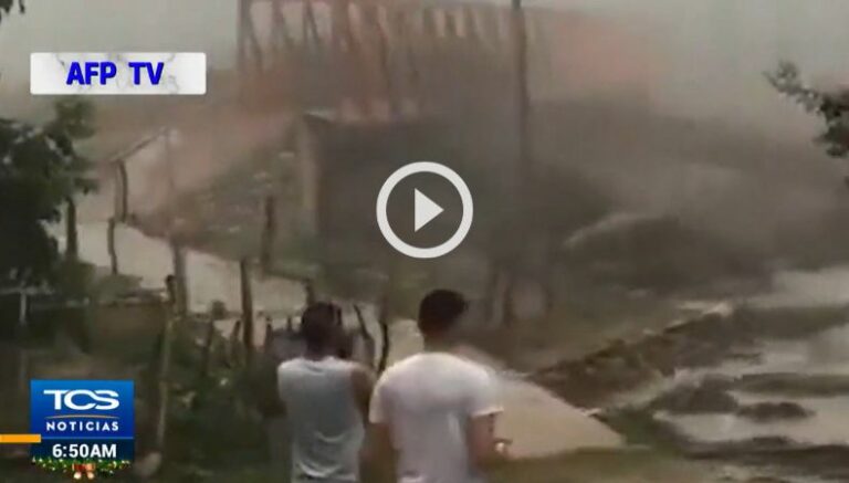 Los hechos fueron grabados por un grupo de personas que estaban en el lugar cuando el nivel del agua comenzó a aumentar. Hasta arrastrar varios sedimentos y tierra que formó una ola de varios metros, la cual destruyó por completo la estructura de metal.