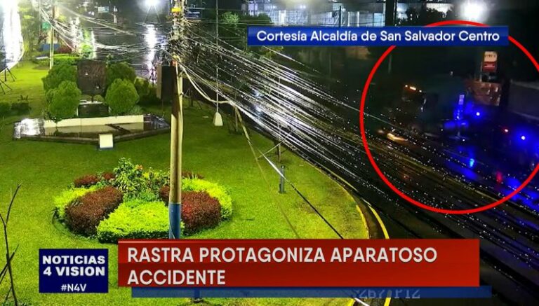 - 3:24 a. m.: Las cámaras de videovigilancia de la Alcaldía de San Salvador grabó el momento exacto en el que una rastra volvió a ser el protagonista de un accidente de tránsito sobre el bulevar Los Próceres.