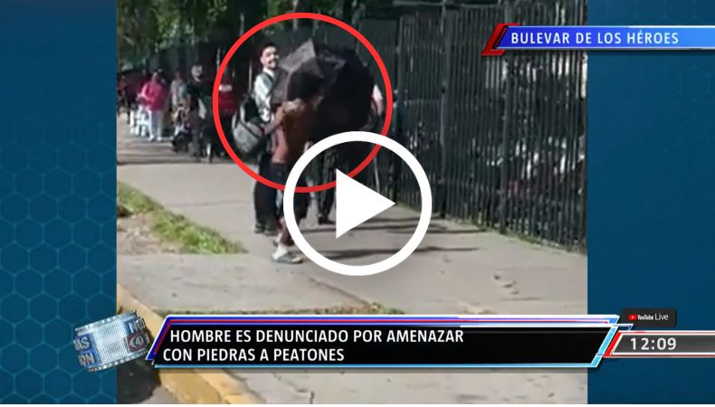 Por medio de una grabación espontánea de un peatón en la calle, se conoce que una persona que camina en los alrededores de un centro comercial en San Salvador, en dirección al bulevar de Los Héroes, parece estar amenazando con piedras a todo aquel que ronda la zona. Le mostramos el video.