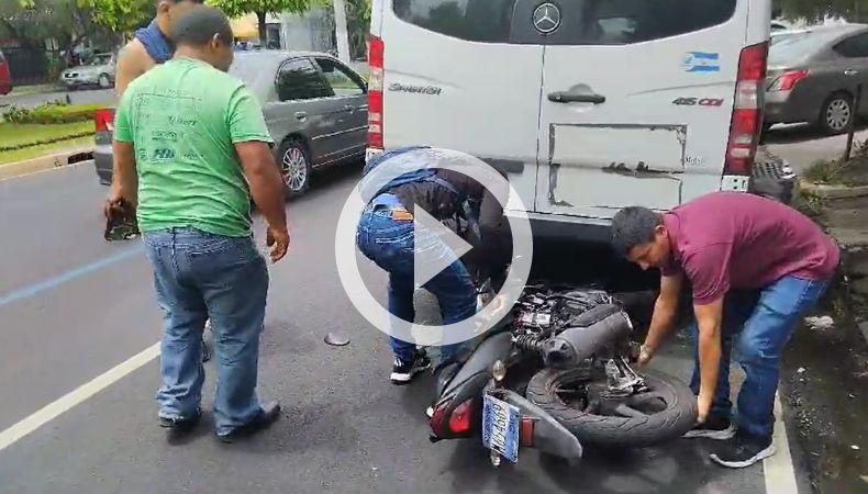 De acuerdo con el informe de Comandos de Salvamentos, el derrame de aceite se percibe frente al edificio anexo del Hospital Benjamín Bloom en San Salvador. Aquí un motociclista perdió el control de la moto y terminó bajo una ambulancia.
