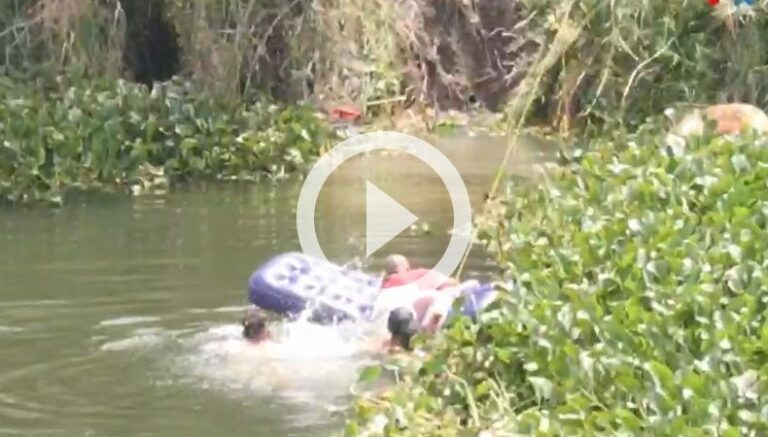 En los videos difundidos en redes sociales se puede observar como al momento que intentaban cruzar el río quedaron atrapados en el lodo que ha hecho que el área sea conocida por el personal de Migración como La Poza, en donde se hace un remolino.