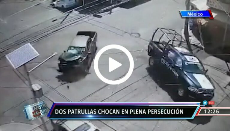 Ese fue el caso de una persecución en la ciudad mexicana de Nezahualcóyotl. Unas patrullas de policía se encontraban rastreando a toda velocidad a unos presuntos sicarios. Sin embargo, los planes se verían frustrados por un fuerte accidente entre ambas, en una calle de cruz.