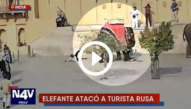 En video quedó captado el momento en el cual un elefante atacó a una turista rusa, mientras se encontraba sobre el animal.