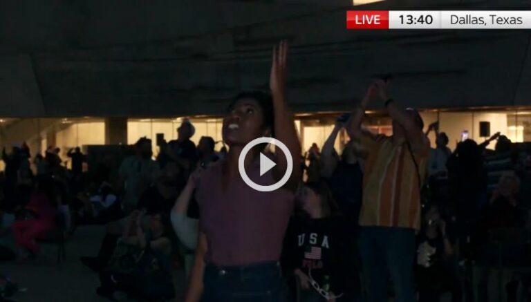 Entre aplausos y gritos, muchos ciudadanos celebraron la llegada al 100% del eclipse solar en Oklahoma, Estados Unidos.