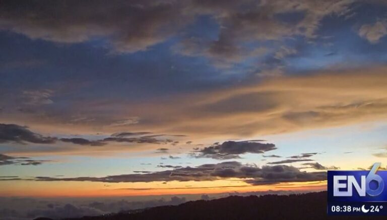 Según la historia del país, en 1916, el Dr. David Joaquín Guzmán, no se equivocó al redactar la Oración a la Bandera Salvadoreña, cuando un día escribió, entre su letra, «cielos de púrpura y oro». Y es que, gracias a la cámara que tenemos como Telecorporación Salvadoreña (TCS), ubicada en la zona de El Boquerón, podemos tener la gran oportunidad de presentarle este tipo de imágenes.