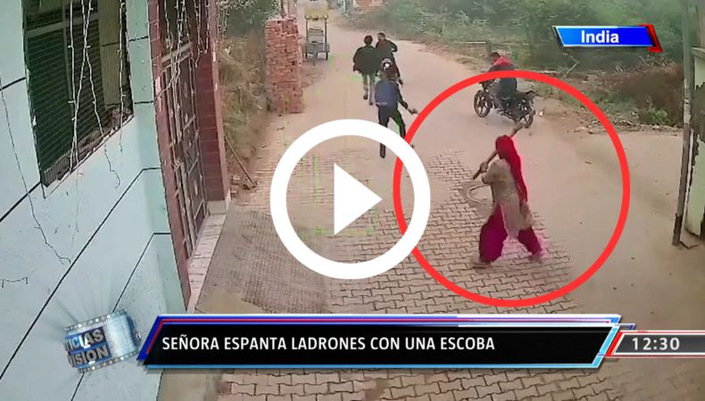 Un grupo de ladrones tuvieron que salir huyendo del lugar, luego de que fueran amenazados por una mujer y su escoba.