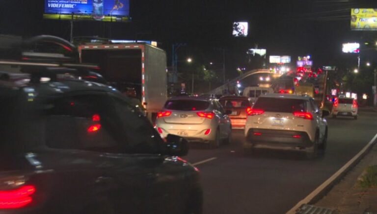 Te mostramos cómo se encuentra el tráfico a esta hora de la noche sobre el bulevar Los Próceres. La dirección en la cual se encuentra nuestro periodista es en dirección a la 49 avenida Sur, en las cercanías del paso a desnivel al monumento Bienvenido a Casa.