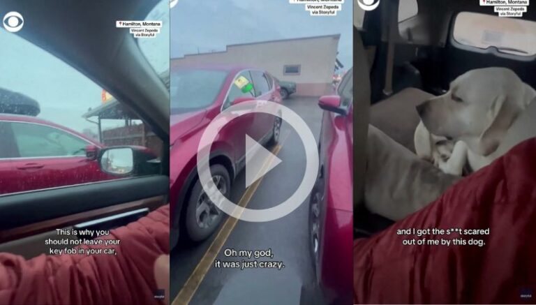 Según se puede ver en el video, el conductor estaba saliendo del estacionamiento marcha atrás, hasta que se dio cuenta de la presencia de un perro en la parte trasera. «Tuve la sensación de que había algo en la parte de atrás», dijo, pero no se trataba de su perro labrador.
