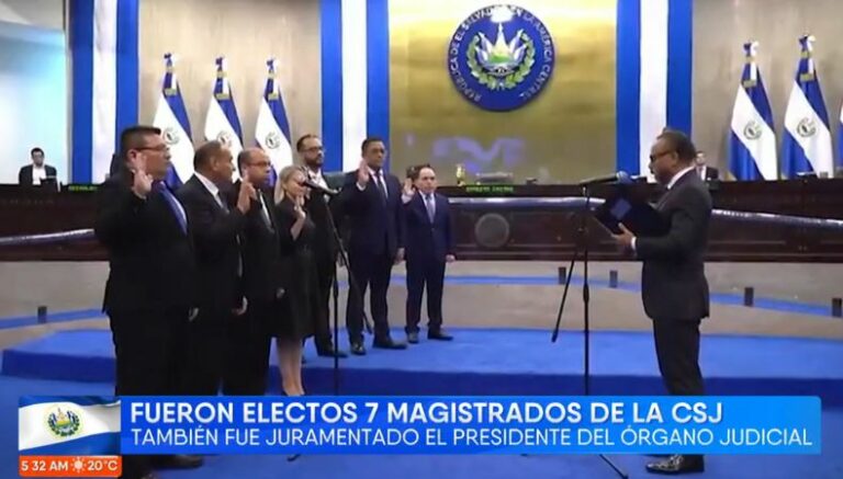 El presidente de la Asamblea Legislativa, Ernesto Castro, juramentó anoche a siete magistrados propietarios, reeligiendo a Óscar Alberto López Jerez y como nuevo presidente de la Corte Suprema de Justicia (CSJ), del Órgano Judicial y de la Sala de lo Constitucional al magistrado Henry Alexander Mejía, cuyo periodo concluirá el 15 de noviembre de 2027.