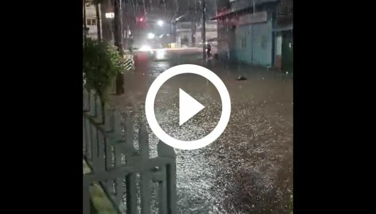 Comandos de Salvamento difundió un video donde se puede observar que, debido a las fuertes precipitaciones en San Miguel, se ha inundado la entrada de la colonia Ciudad Pacífica.