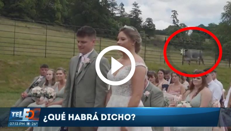 Con el video que te mostramos, es digno ejemplo de ello. Y es que una pareja decidió que este ritual se llevara en el campo, pero con lo que no contaba es que una vaca que se encontraba en el lugar, interviniera en el momento exacto en el que la abogada pide la respuesta si alguien se opone al matrimonio.