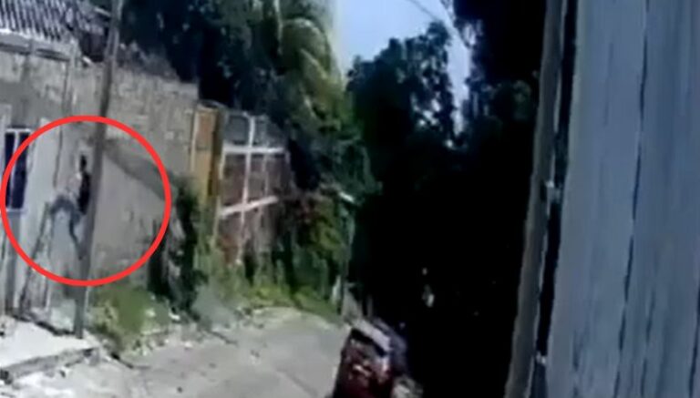 En el video se observa que el hombre está caminando en la calle. De pronto, es captado intentando subir hacia el techo de una vivienda. Se ve que se apoya de un poste y con el muro de la casa, va subiendo poco a poco, hasta que logra llegar arriba y ahí se detiene. Posterior, es grabado por las mismas cámaras, caminando en la zona, por lo que se logra identificar a la persona.