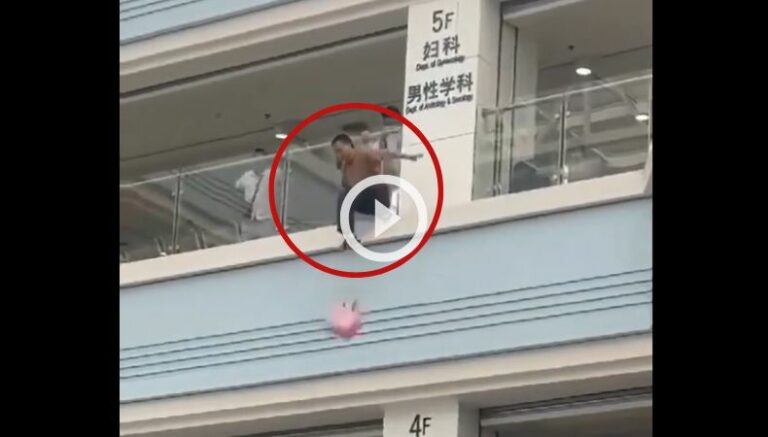 En redes sociales, circula un video donde un hombre decidió ponerle fin a su vida, saltando desde el quinto piso del hospital de la Universidad Médica de Nanning, en Guangxi, China.