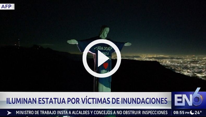 La estatua del Cristo Redentor en Río de Janeiro, Brasil, se iluminó en honor a las víctimas de las lluvias e inundaciones en ese país.