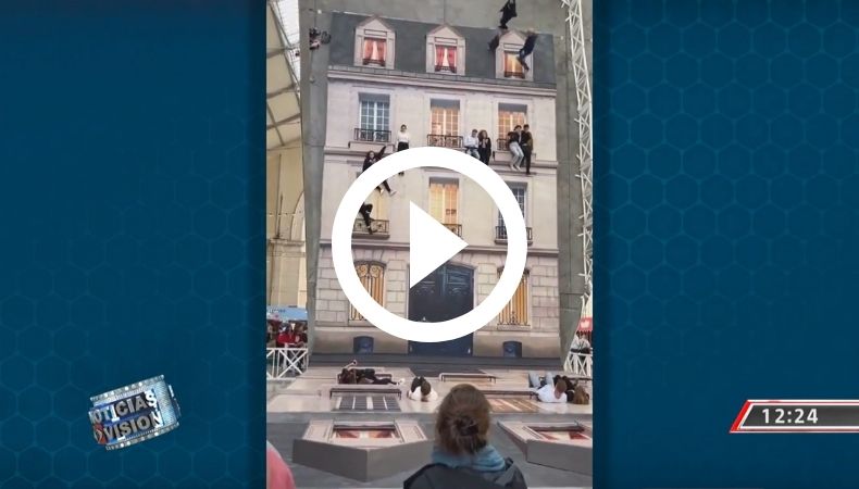 Como retrato copiado, pero que puede ser entre una ilusión y la realidad. Analicemos el video. Unas personas parecen estar en la cornisa de unas ventanas, otras, intentando subir hasta la terraza de una de las habitaciones de lo que simula ser un edificio de cuatro pisos.