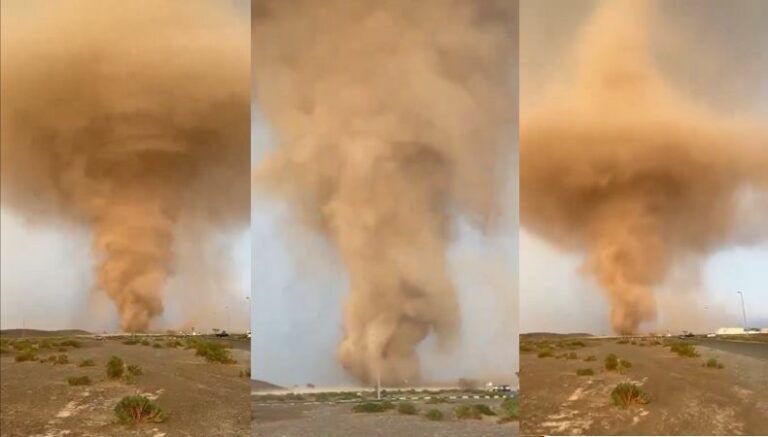 Por su parte, el sitio web especializado en meteorología, Meteored, compartió otras imágenes de este fenómeno, que calificaron como “una impresionante ola de tornados en Emiratos Árabes Unidos”.