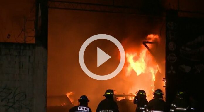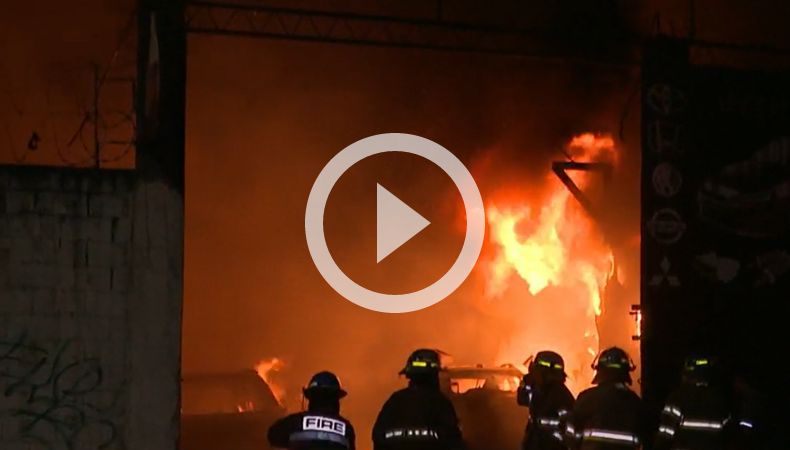 Las llamas parecían incontrolables, equipos de bomberos con equipo especializado trabajaban para controlar el fuego que arrasaba con todo lo que tenía en su interior, dos talleres y una vivienda. Walter Carreño, teniente de Bomberos, explicó que el fuego empezó a las 7:45 pm, en un taller de enderezado y pintura y venta de repuestos.