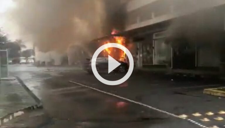 Las autoridades de Protección Civil de Nuevo León compartieron un video, donde se observan densas columnas de humo que se generaron en el establecimiento comercial llamado “Napoli Pizza”.
