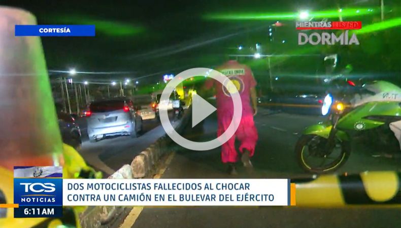 En horas de la noche del día de ayer, 26 de septiembre, una pareja de motociclistas perdieron la vida, tras chocar contra un camión en el bulevar del Ejército, San Salvador.