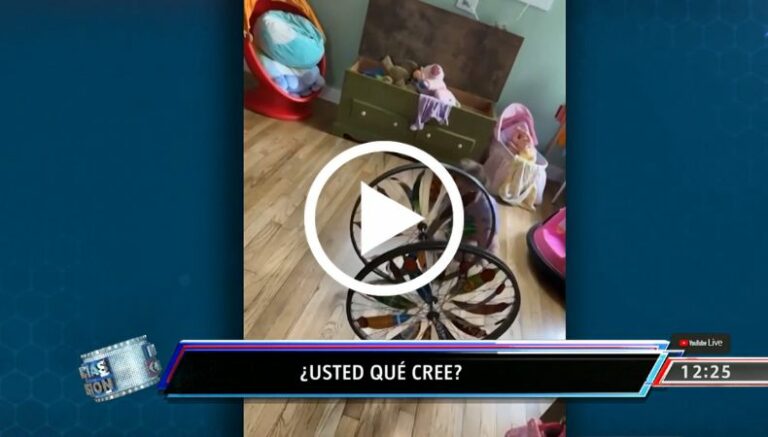 Para la niña todo es alegría, pero quizá no así para la misma madre. No se observa la mano de ella moviendo el objeto. Tampoco se aprecia un hilo, ni mucho menos algún espacio donde se le pueden colocar baterías y que sea manejado por control remoto. ¿Qué causa el movimiento?