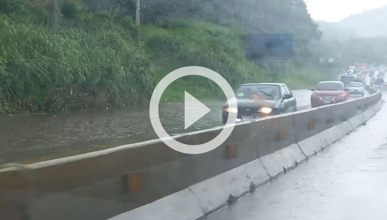 Debido a la tormenta, hay acumulación de agua en la salida de Lourdes, Colón hacia la autopista Los Chorros. Los vehículos deben avanzar despacio.