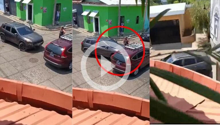 Sin embargo, eso no fue suficiente y la persona que va en el carro tipo camioneta retrocede, cierra su puerta y gira rápidamente para escapar de la escena.