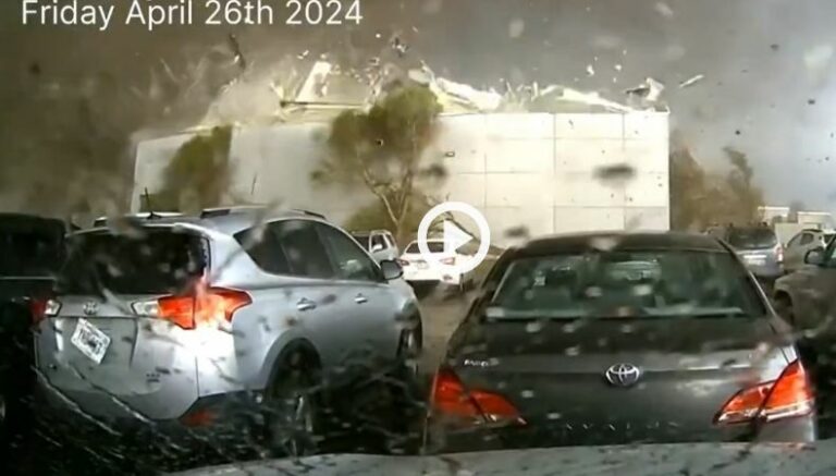 El incidente fue grabado por un automovilista que estaba cerca del lugar, donde se observa cuando el fuerte tornado (de color gris oscuro) se acerca paulatinamente hacia el almacén, mientras que, a medida sigue su curso, algunos árboles son arrancados de raíz al no resistir la violencia de la fuerza del vendaval.