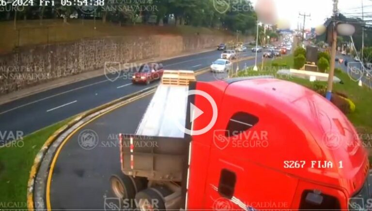 Las cámaras de Sívar Seguro de la alcaldía de San Salvador captaron el momento en que una rastra dañó parte de los jardines ubicados en el bulevar Los Próceres.