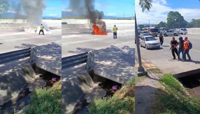 En información de última hora, se reporta una motocicleta incendiada en el periférico Claudia Lars. En un video publicado en las redes sociales se observa que la moto casi en su totalidad agarró fuego.