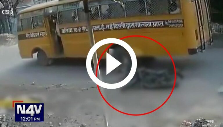 Como podemos observar en la grabación, aparentemente de una cámara de seguridad de la zona, un motociclista se encuentra parado a la par de su moto, cuando (de pronto) pierde el equilibrio, cae al suelo y pocos segundos después, sobre su cuerpo pasan las ruedas de un autobús, ante la mirada de las personas que estaban cerca y lo presenciaron todo.