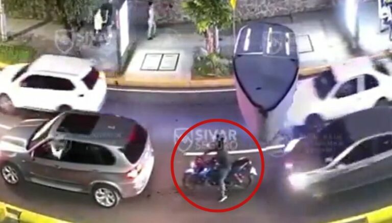 Nuevamente, las cámaras de videovigilancia de Sívar Seguro captaron el momento en que un joven motociclista quedó prensado, es decir, en medio de dos carros, en el paseo General Escalón, San Salvador.