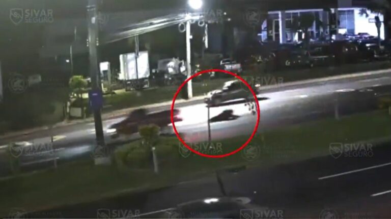 En el respectivo clip compartido por la comuna se observa cuando la víctima conducía a excesiva cayendo sobre el asfalto del bulevar Los Próceres, en San Salvador. Además, se evidencia que el motociclista invadió el carril de un conductor.