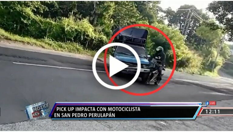 Según se conoce, el hecho ocurrió en San Pedro Perulapán, en Cuscatlán. Tal y como se aprecia, la moto se dirige en su carril a una velocidad aparentemente excesiva, cuando, de pronto, el pick up (de color celeste) busca cruzar a su izquierda, sin percatarse de la motocicleta, hasta colisionar con él.