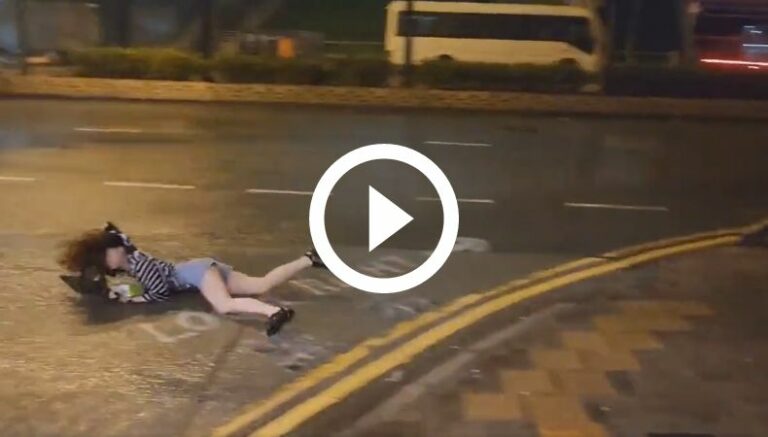 Esto habría ocurrido en Hong Kong. No se sabe más información de la mujer, o si experimento lesiones producto del accidente. Sin embargo, se alcanza a vislumbrar que se erige en pie luego de la estrepitosa caída.