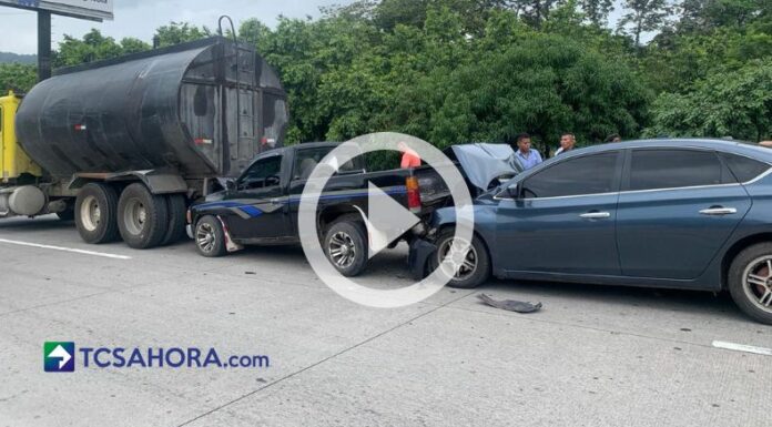 Un múltiple accidente de tránsito se reporta esta mañana en el bulevar Monseñor Romero. En este percance son cuatro vehículos los que han colisionado contra un camión cisterna.