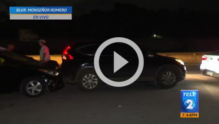 Esta noche se ha registrado un múltiple accidente en el bulevar Monseñor Romero, en dirección hacia el Occidente del país. En el percance se han visto involucrados cuatro vehículos tipo sedán. Según información preliminar, solo se han registrado daños materiales. Le recomendamos armarse de paciencia si transitará por la zona.