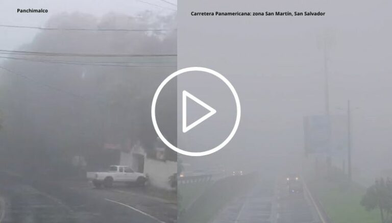 La periodista Ana Quintanilla se trasladó hacia una zona de la calle a San Martín, en San Salvador, donde nos brindó un reporte de cómo se encuentra la lluvia en estos momentos, pero, a su vez, se puede notar como, durante el transcurso de su reporte, la neblina se hizo presente en el lugar.