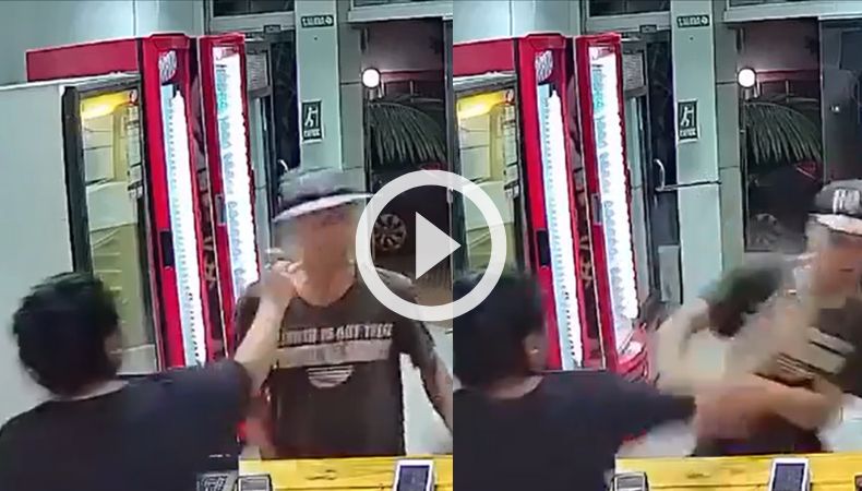 En las imágenes logra observarse cuando un sujeto entra al local y empieza a hablar con la dependiente exigiéndole las ganancias del negocio. Tras esto, las acciones toman un giro inesperado, pues aunque la mujer mantuvo la calma y simuló que iba a sacar el dinero, lo que en realidad tomó fue un frasco de gas pimienta y lo rocío directamente sobre el rostro del ladrón.
