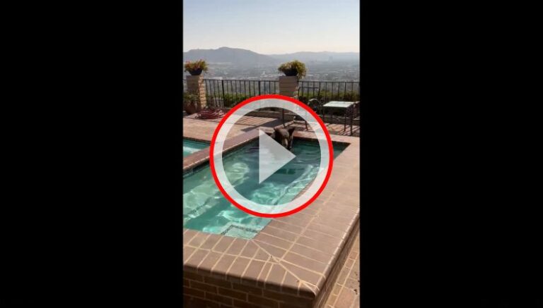 Las altas temperaturas han llevado a las especies a buscar temperaturas frescas y aquellos lugares viables para sofocar el calor. Un lugar muy tentador que encontró un oso fue el patio trasero de una casa. El intrépido animal decidió darse un chapuzón en la piscina.
