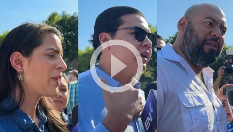 Dirigentes de los partidos políticos VAMOS, NUESTRO TIEMPO y ARENA se hicieron presente en las afueras del Gimnasio Nacional «José Adolfo Pineda» para exigirle al Tribunal Supremo Electoral que les brinden información para el desarrollo del escrutinio final de las elecciones legislativas 2024.