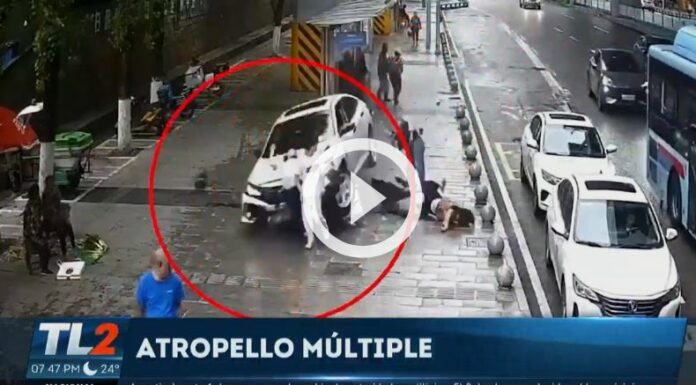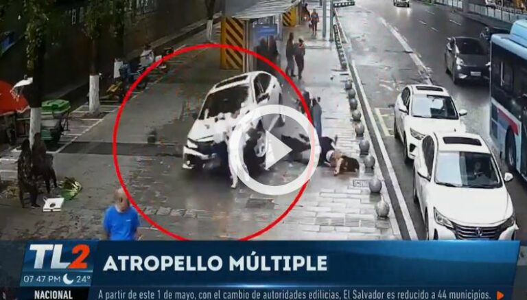 Un accidente de tránsito quedó captado por las cámaras de vigilancia de un lugar, y fue compartido por redes sociales. En la grabación se ve cómo un conductor al parecer pierde el control de su vehículo, causando el atropellamiento a unas personas que se encontraban pasando por una para de autobús.