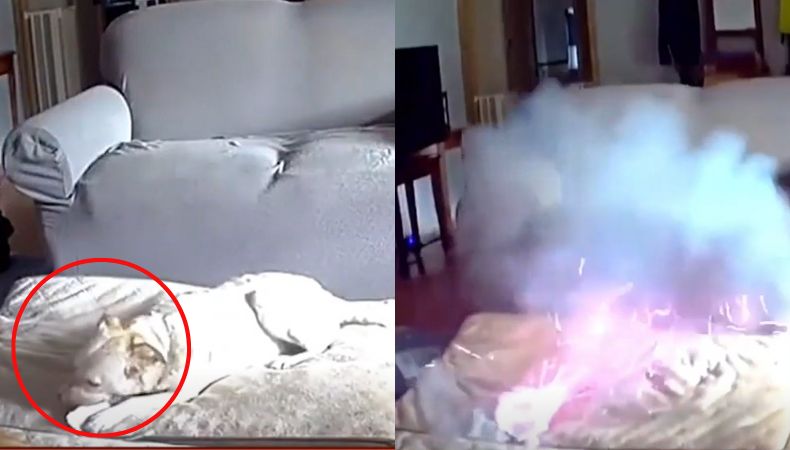 Tal como se aprecia, el clip quedó grabado por el sistema de videovigilancia de la casa, justo en ese momento las mascotas del hogar (dos perros y un gato) se encontraban en la sala. Ante la emergencia, los animales lograron reaccionar de forma oportuna y huyeron del lugar, sin resultar con heridas.