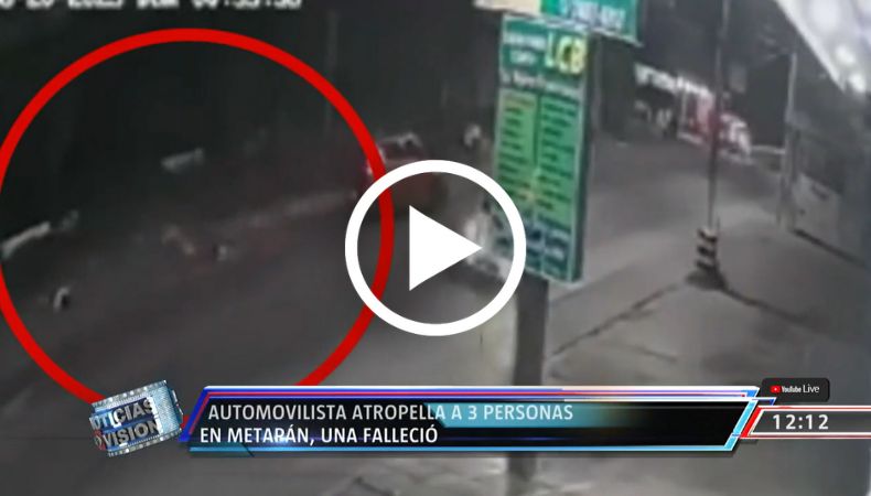 Una cámara de videovigilancia grabó el momento en el que tres personas son atropelladas por un automóvil en Metapán.