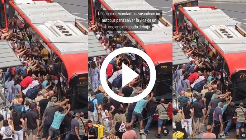 ¡Impresionante! Decenas de personas mueven un autobús en Bilbao para rescatar a un anciano que quedó atrapado debajo de la unidad.