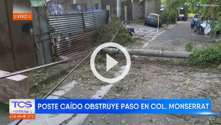 En la sección de Reporte Ciudadano de TCS Noticias, el periodista Daniel Ayala nos informa sobre la caída de un poste del tendido eléctrico en la colonia Monserrat, final de la avenida 51 Sur de San Salvador Centro.